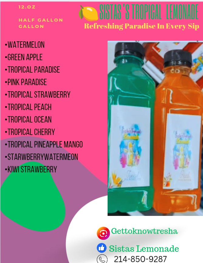 Our refreshing tropical lemonades are made with 100% lemon juice and cane sugar